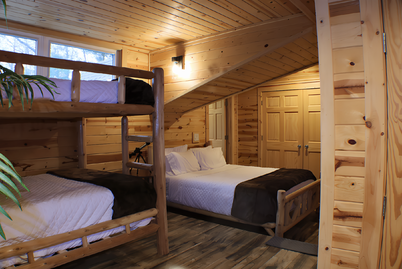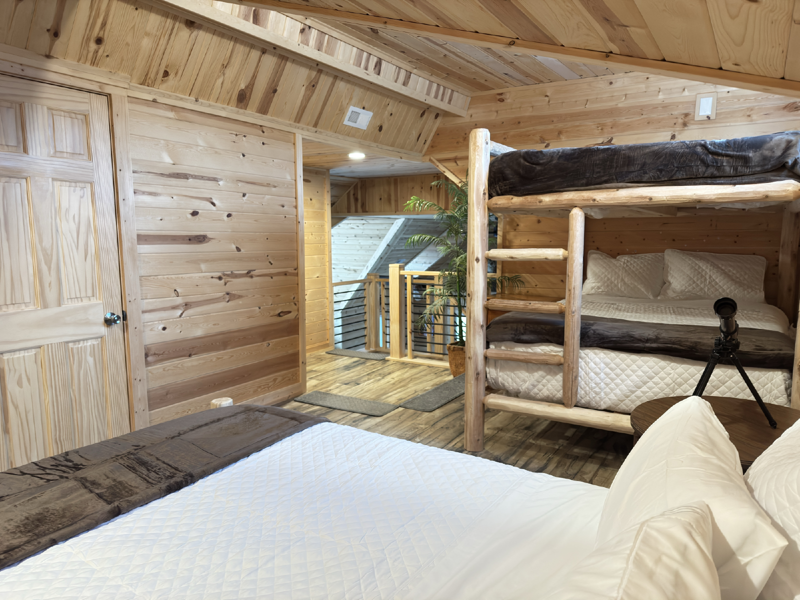 ⭐ Bedroom 3 – Queen bed + double-over-double bunk
